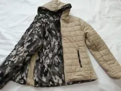 Chamarra rompevientos doble vista talla S. Chamarra para dama rompevientos, doble vista, beige y verde militar, y talla S