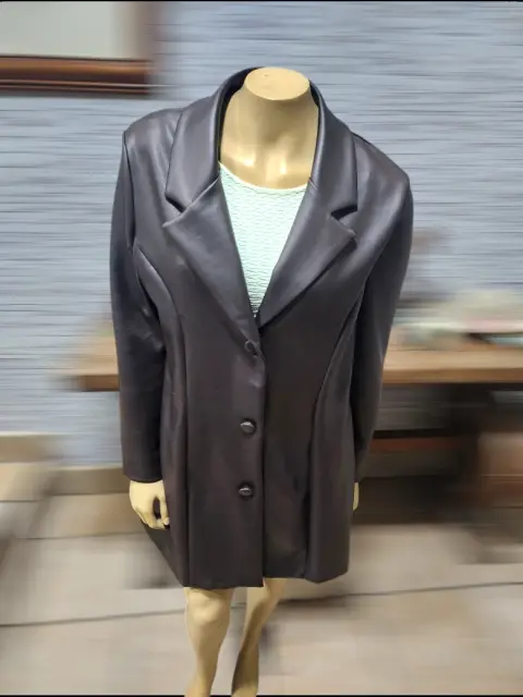 Chamarra rompevientos Larga colleccion Wearever,. Chamarra rompevientos Larga colleccion Wearever, talla XL, color Cafe oscuro con tacto de pleader, habierta del frente con 3 botones. Cuello en V, Manga larga, acento de pliegue, tell Delgado hecha con polyester y espandex, cae a la rodilla, mide 42cm de hombro a hombro, 47cm de axila a axila 47cm de cintura, 59cm de Manga con 86cm de largo del hombro hacia abajo en buen estado cosmetico.