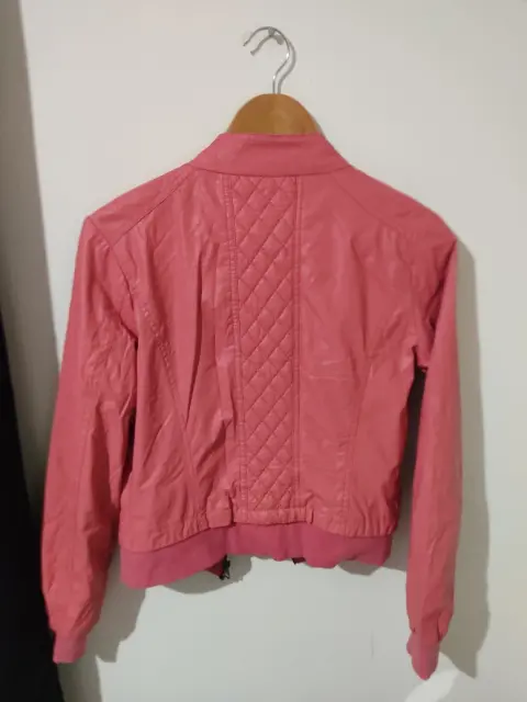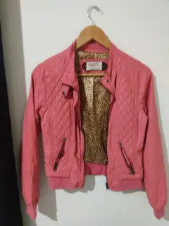 Chamarra rosa. Chamarra de textil con forro interior de animal print queda talla xs o chica, en excelente estado, solo un pequeño desgaste en el cuello
