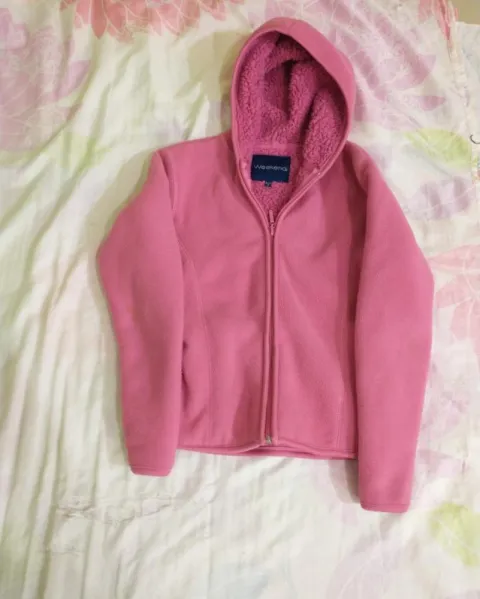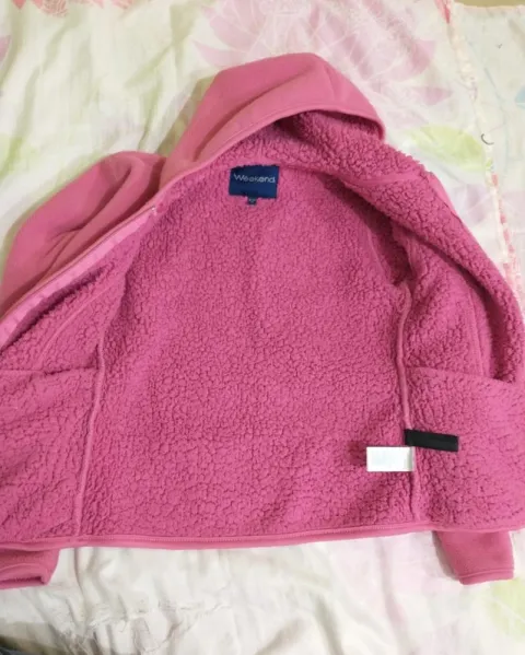 Chamarra Rosa Weekend. Es una chamarra con borrega en super exelente estado color rosa talla 8/10