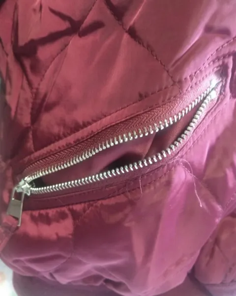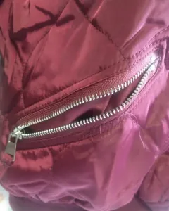 Chamarra satinada con cierres. Chamarra vino satinada, calientita, sin detalle. De axila a axila mide 56cm, sin estrenar.