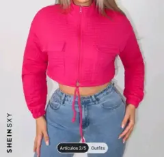 Chamarra SHEIN ✨Nueva. Cazadora crop Color rosa Con bolsillos enfrente Talla M⭐Nueva⭐Marca SHEIN