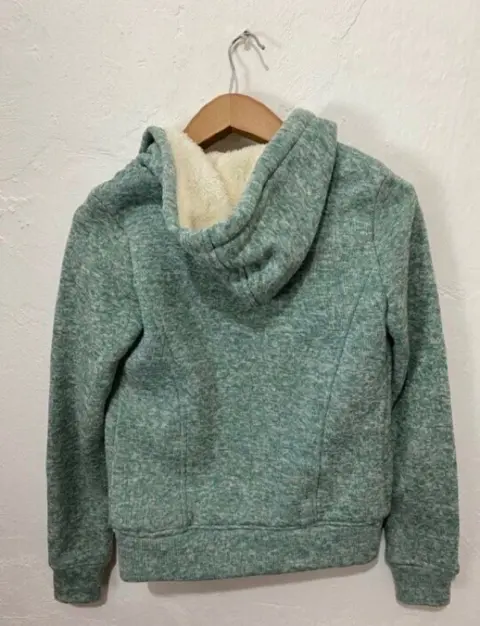 Chamarra súper calientita. Sudadera jaspeada color aqua, con forro peludo (ver segunda foto), aplicaciones doradas. Con gorro y bolsas a los lados. Súper bonita (: La compré por aquí pero me quedo un poco justa.