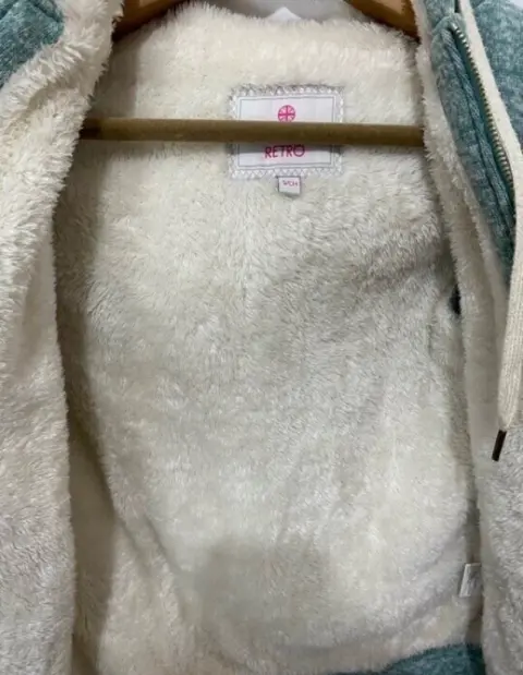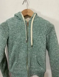 Sudadera jaspeada color aqua, con forro peludo (ver segunda foto), aplicaciones doradas. Con gorro y bolsas a los lados. Súper bonita (: La compré por aquí pero me quedo un poco justa.