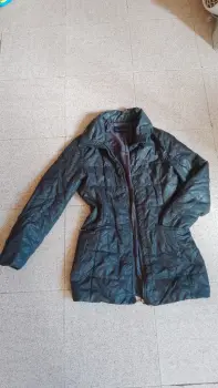 Chamarra tipo cazadora. Talla G. Forro satinado. Se compró en Palacio del Hierro. De cierre. Bolsillos laterales funcionales. Es negra o gris oscuro con textura impresa como se muestra en las fotos.