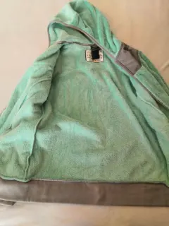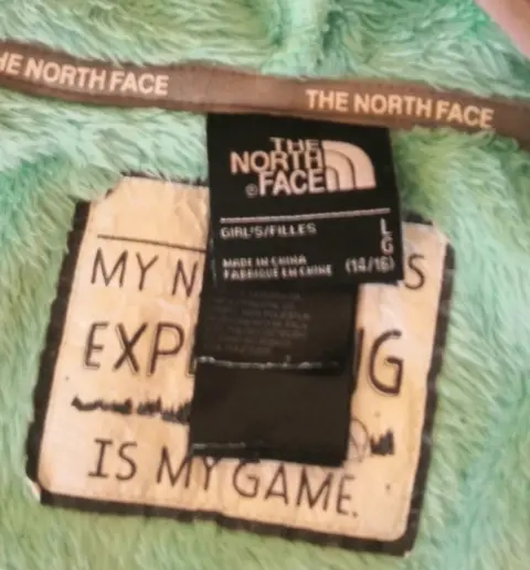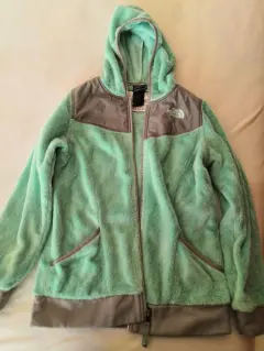 Chamarra de niña marca THE NORTH FACE color vede menta con gris, en excelente estado, dice talla 14-16 de niña pero considero que queda a talla de 10 hasta 12 - 13 años, sin ningún detalle, en excelente estado.