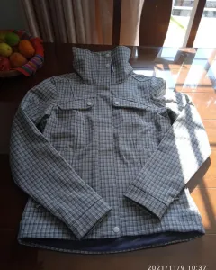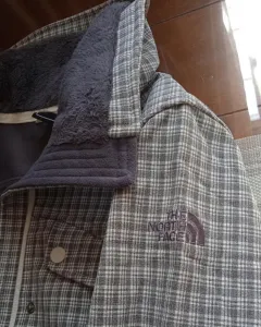 Chamarra The North Face gris. Chamarra The North Face Gris a cuadros, talla S. Nueva, impermeable, lista para estrenar, el interior es aterciopelado en gris, bolsas con cierres para seguridad, bolsas a la altura del pecho con botones, marca visible en manga. Medidas:Axila a axila 45cmHombro a hombro 40cmLargo 63cmManga 65cmCintura 44cmCadera 48cm.