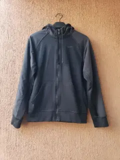 Bonita chamarra para hacer ejercicio, térmica, con capucha con cierre y bolsas frontales, muy padre, muy poco uso*Talla S, pero puede quedar a M*Medidas: Axilas 50cm*Detalles: Se jaló la tela en la manga izquierda, foto 7, no afecta su uso*Calificación:9*NO OFERTAR NI BLOQUEAR LA PRENDA SI NO ESTÁS SEGURA DE LA COMPRA*GRACIAS POR TU PREFERENCIA*