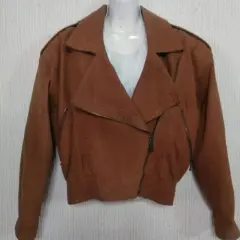 Chamarra tipo biker color camello de gamuza. Talla S. Viene amplia, queda a una M. En muy buenas condiciones aunque necesita tintorería.