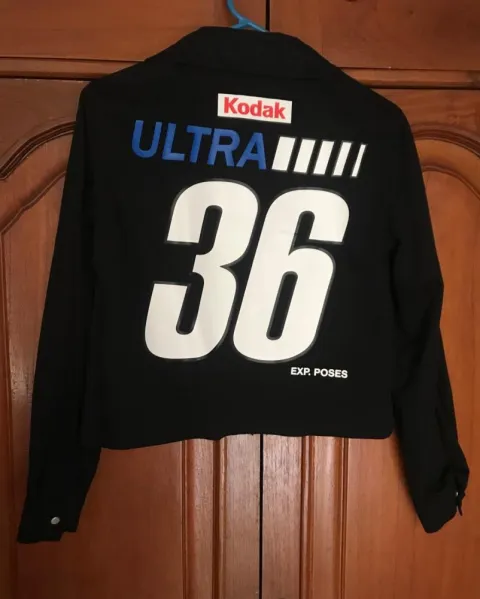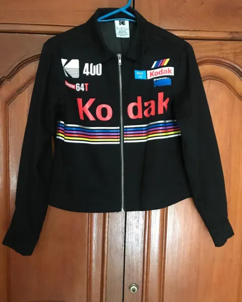 Chamarra de tela de gabardina, es algo gruecesita, de excelente calidad con cierre frontal