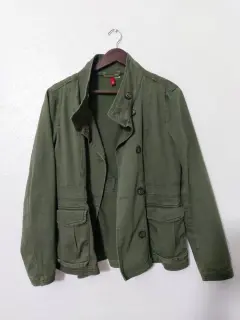 Chamarra tipo cazadora. Preciosa!Color verde seco (tal cual las fotos, no es intenso)Talla 8, queda muy bien a M.Sin detalles y en perfecto estado.