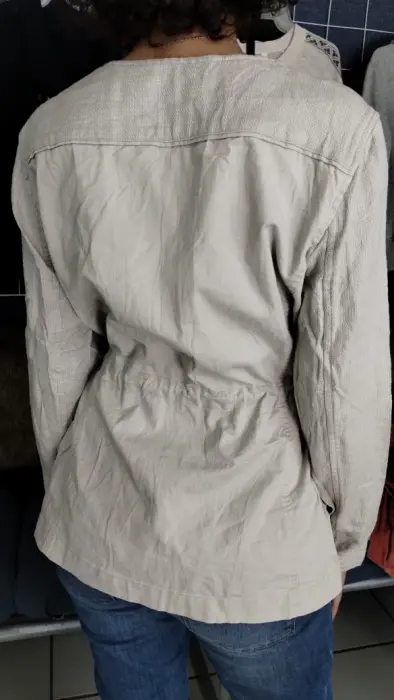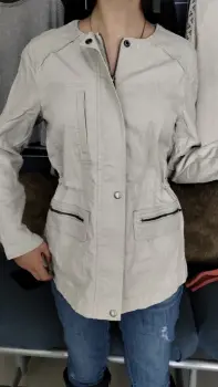 Chamarra tipo cazadora de dama color beige talla ch marca Loft