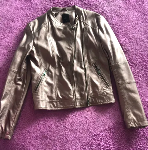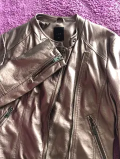 Chamarra tipo piel. Hermosa chamarra color rosa metálico, es marca lob y queda muy bien, cierre en las mangas