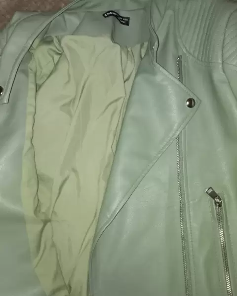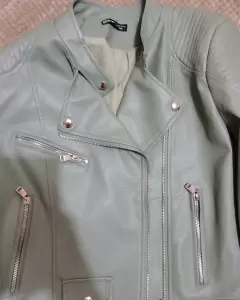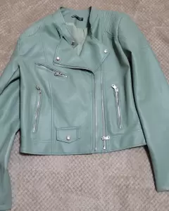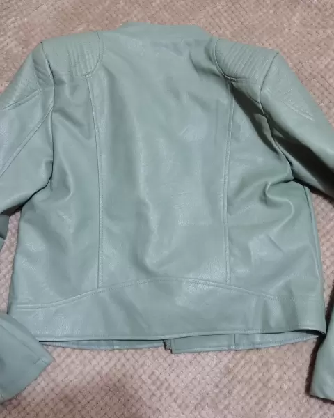 CHAMARRA VERDE POLI PIEL. Chamarra de piel sintetica con forro