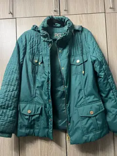 Chamarra verde PURIFICACION GARCÍA. Chamarra verde PURIFICACIÓN GARCÍA de cierre y botines dorados, bolsas de boton, trae gorro y se puede guardar en un cierre que tiene escondido, es muy calientita.