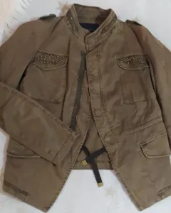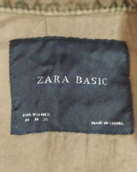Chamarra verde olivo marca Zara, sin detalles y en perfecto estado, no tiene mucho uso, aun conserva su boton de repuesto. Tiene lazos por el interior para ajustar la cintura, el cierre del cuello solo es decoración.