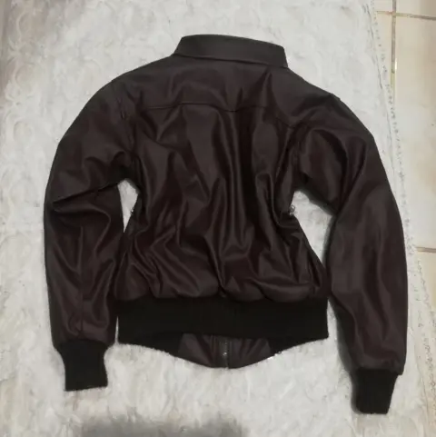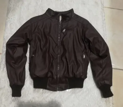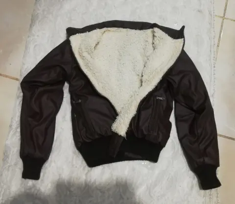 Chamarra vinipiel aborregada por dentro. Bonita chamarra color café, tipo piel aborregada por dentro, para niña talla 8-10 años. Sin ningún detalle.