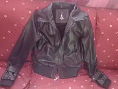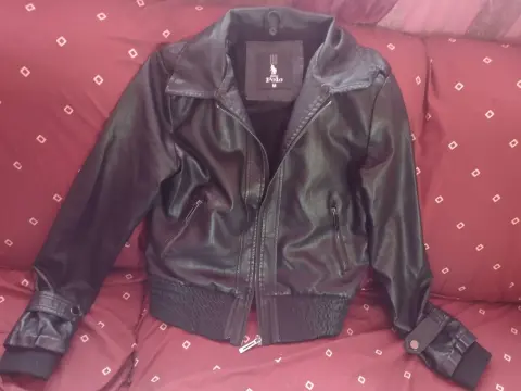 Ofrezco chamarra negra marca Polo vinipiel con peluche desmontable en el cuello pequeño detalle en la manga. Ligeramente notorio. Talla Mediana..