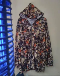 Chamarra ligera, vinilEstampado de las décadas ¡Lleno de pop!Capucha, sus mangas son ceñidas.T: LMedidas:Axilas: 60cmLargo: 72cm