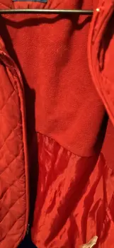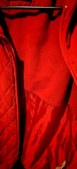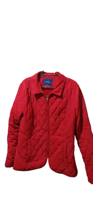 Chamarra con forro abrigador, color rojo quemado, bolsas a los lados sin cierre mínimo uso