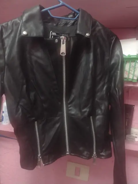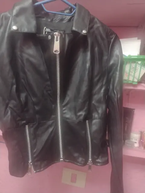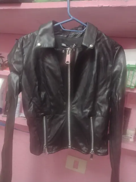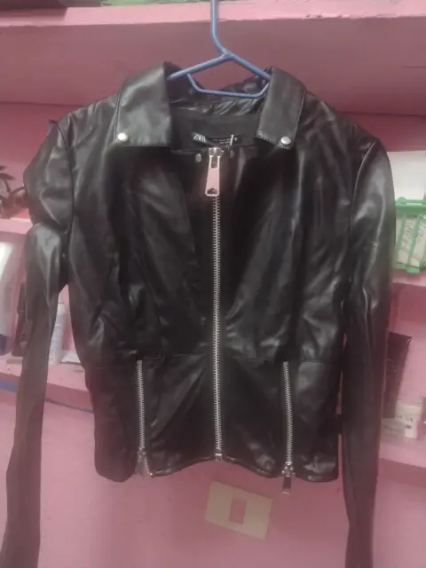 Chamarra Zara. Talla chica, en buen estado, perfila excelente figura. Color negro, cierres