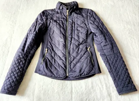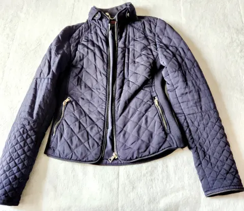 Chamarra, azul marino, marca Zara, talla xs, es casual , abrigadora, con Laterales estrech