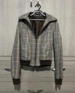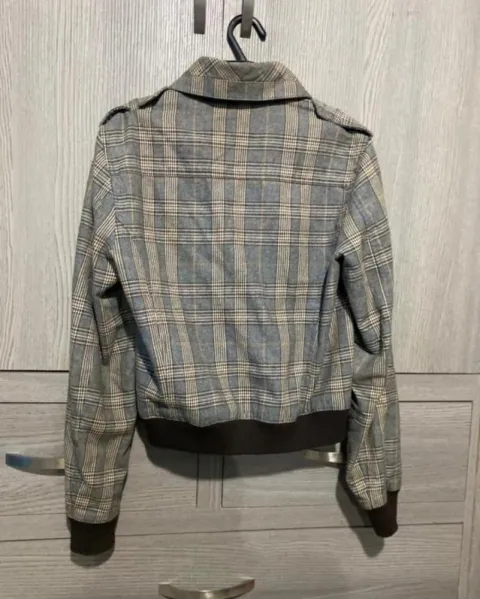 Chamarra tipo lana con cuadros, tela rígida, marca zara edición limitada, sin detalle de uso