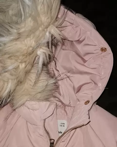 Bonita chamarra rosa, el gorro con peluche, que se puede quitar talla 6 en perfectas condiciones