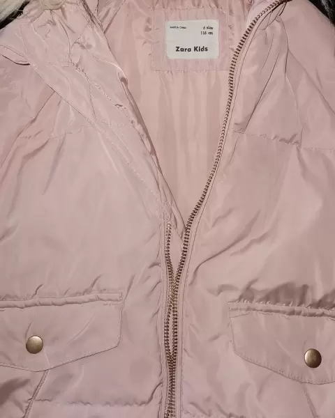 Chamarra Zara Rosa. Bonita chamarra rosa, el gorro con peluche, que se puede quitar talla 6 en perfectas condiciones
