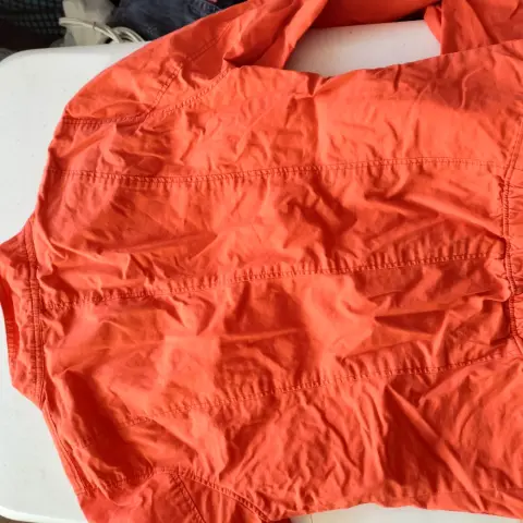 Chamarrita naranja. Es una chamarra talla Chica, es una tela muy bonita, es original y está en excelentes condiciones.