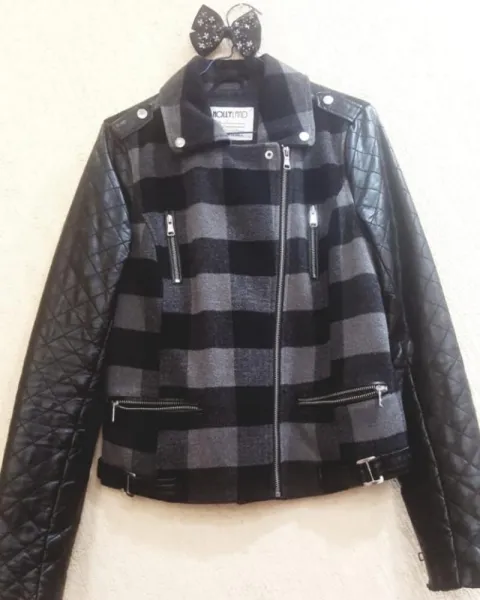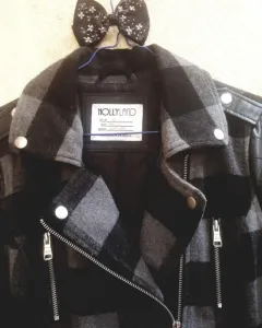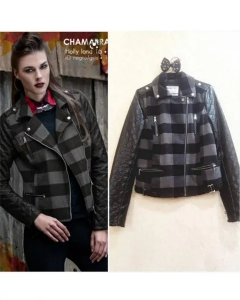 Chamarrita tipo biker Hollyland. Linda chamarrita de tela tipo lana y mangas en polipiel, está en muy buen estado a excepción de los puños que por el uso se le cayó la piel, pero no se ve mal ya que como es negra no se nota *Talla M* *Calificación: 8* *NO OFERTES NI BLOQUEES PRENDAS SI NO PIENSAS COMPRAR*GRACIAS POR TU PREFERENCIA*