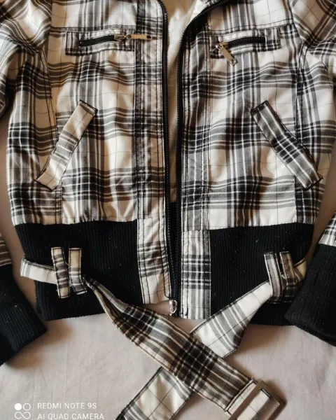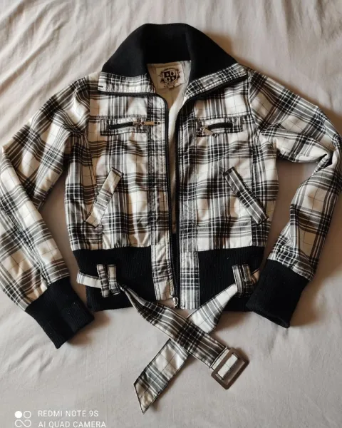 Chaqueta a cuadros. Hermosa chaqueta, la etiqueta dece l pero queda mejor a una m con bolsillos al frente y con un cinturón a la cadera que la hace genial