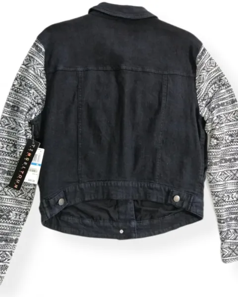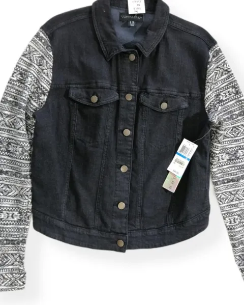 Chaqueta de mezclillaMezclilla tipo licraColor negraTela DelgadaMangas de telaTalla xl