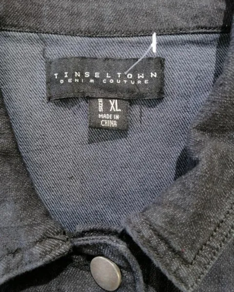 Chaqueta de mezclilla XL. Chaqueta de mezclillaMezclilla tipo licraColor negraTela DelgadaMangas de telaTalla xl