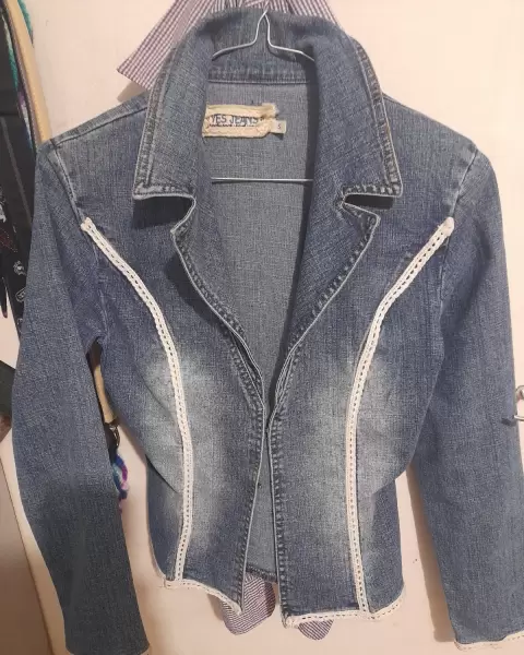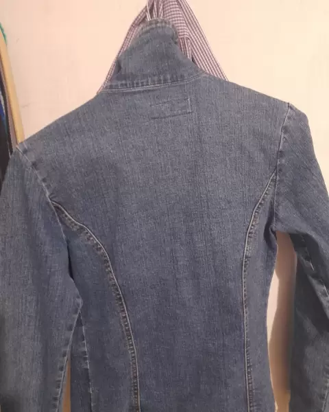 Chaqueta mezclilla. Hermosa chaqueta mezclilla muy ligera y con poco strech, mangas 3/4, pinzas en la parte de atras, con bies blanco x frente.Amolda super lindo