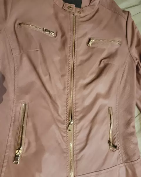 Chaqueta rosa. Chaqueta de vinipiel usada una vezTalla mViene amplia