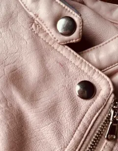 Chaqueta rosa. Preciosa chamarra imitación piel , es color rosa clarito. Talla 13/14 pero queda a talla XS mujer . Detalle en la parte de atrás pequeño desgaste no se percibe mucho ni afecta para nada su uso (ultima foto)