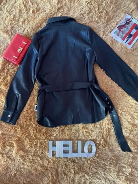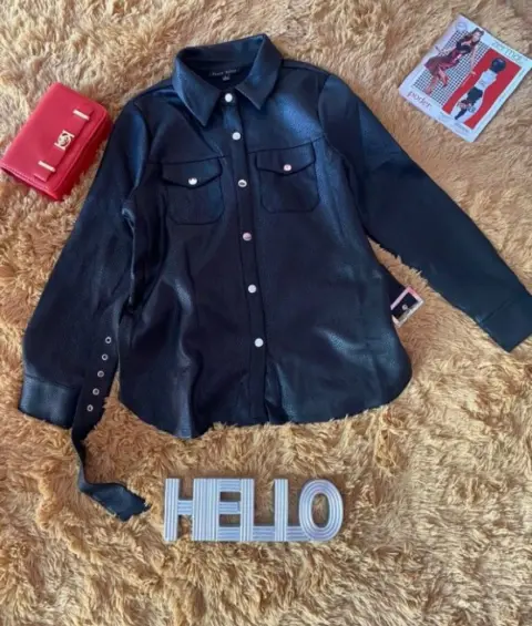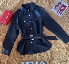 Bonita chaqueta tipo vinipiel talla mediana, color negra trae cinturón para marcar cintura