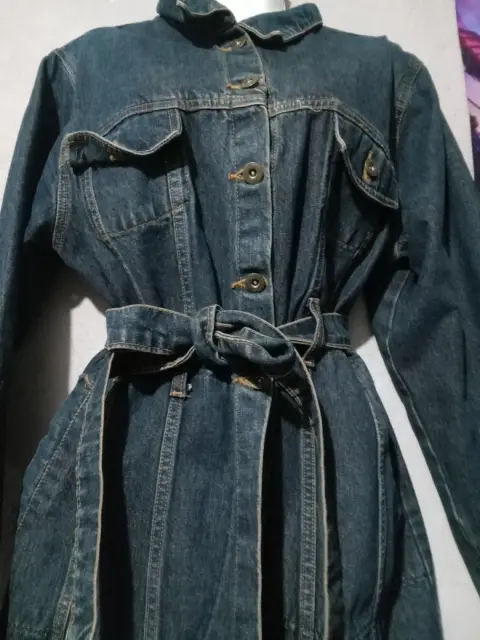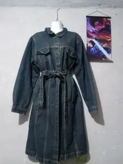Gabardina súper hermosa larga llega casi a los.tobillos , tiene una cinta para ajustarla ala.cintura es mezclilla gruesa