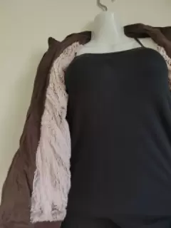 Hermosa chamarra abrigadora pero ligera, la tela es suave y por dentro trae peluche, sin detalles.Medidas: espalda 80 cm, pecho 96 cm, cadera 80 cm trae resorte en la parte de abajo.