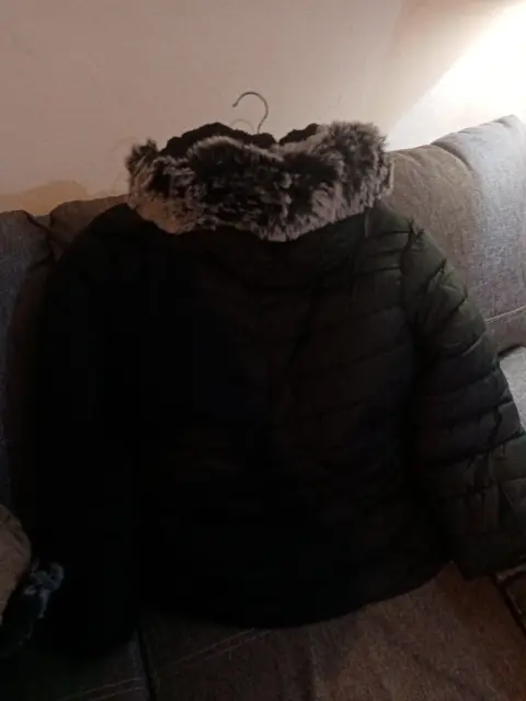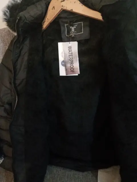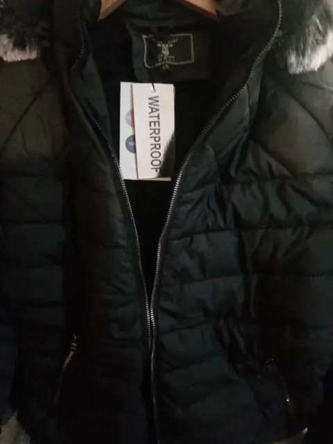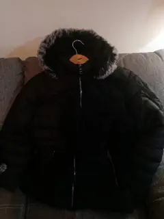 Hermosa chamarra, nueva con etiqueta, color negro, talla g, pero viene reducida, le queda bien a una mediana, con borreguita x dentro, gorro desmontable, ultimo precio.