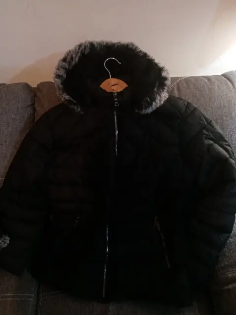Hermosa chamarra negra, nueva, m. Hermosa chamarra, nueva con etiqueta, color negro, talla g, pero viene reducida, le queda bien a una mediana, con borreguita x dentro, gorro desmontable, ultimo precio.