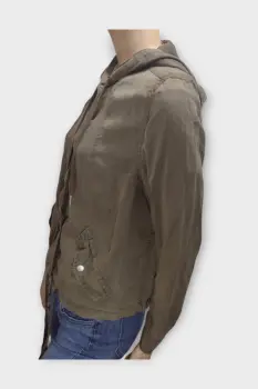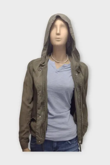 H&M Divided Chamarra Dama Lyocell Verde Oliva 12Hermosa Chamarra marca H&M Divided en color Verde Oliva Marca: H&M DIVIDEDOrigen: ChinaMaterial: 100% LiocelTalla: 12Estilo: CasualPatrón: HoodieColor: Verde Oliva Cierre: Cremallera y BotónPecho: 56 cmLargo: 55 cmHombro: 37 cmManga: 60 cmRopa de USO en muy buen estado