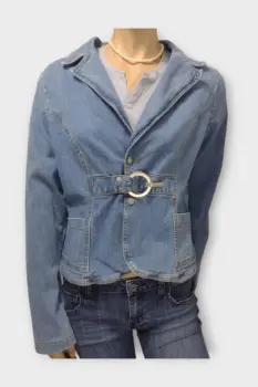 HOTKISS Chamarra Dama Mezclilla Azul SHermosa chamarra de Mezclilla marca Hotkiss Marca: HOTKISSOrigen: ChinaMaterial: AlgodónTalla: SEstilo: CasualPatrón: CasualColor: Azul MarinoCierre: BrochePecho: 50 cmLargo: 57 cmHombro: 41 cmManga: 62 cm Ropa de USO en muy buen estado