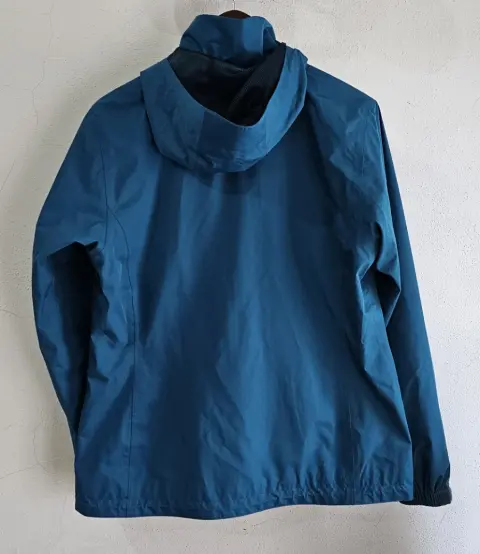 Impermeable para senderismo azul luminoso, resistente al viento, transpirable. Chamarra ligera, moderna, la capucha se puede guardar en el cuello. Talla 40, strech