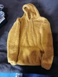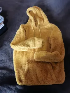 Linda chamarra. Chamarra tela suave u calientita cómoda con gorro y bolsa al frente y puños cerrados