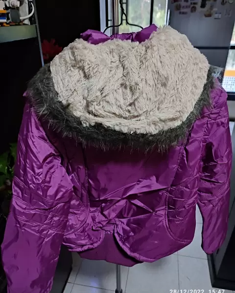 Preciosa chamarra morada talla mediana, se convierte en chaleco y cuenta con gorro. Nuevesita para estrenar y para que no pases frío