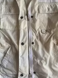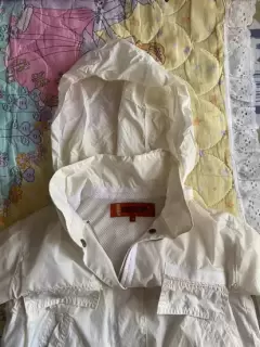 Práctica chamarrita / rompeviento con gorro oculto en el cuello, marca talla M pero queda muy bien a talla XS, S y M, cumple muy bien con su función, por estar guardada tiene como unas manchas que posiblemente en tintorería si se quiten. Está tal cual como se muestra en fotos, aún con mucha vida para su función.Precios negociables así que puedes ofrecer :)