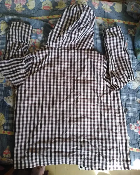 Gabardina rompevientos para lluvia, con gorrito cuadriculado negro con blanco, bolsas al frente