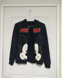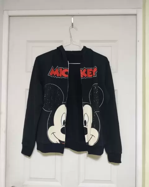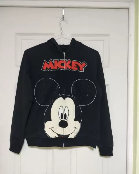 Sudadera de cierre ( abierta). Sudadera de Mickey Mouse de licra negra con pedrería talla L- XL Nueva sin etiqueta